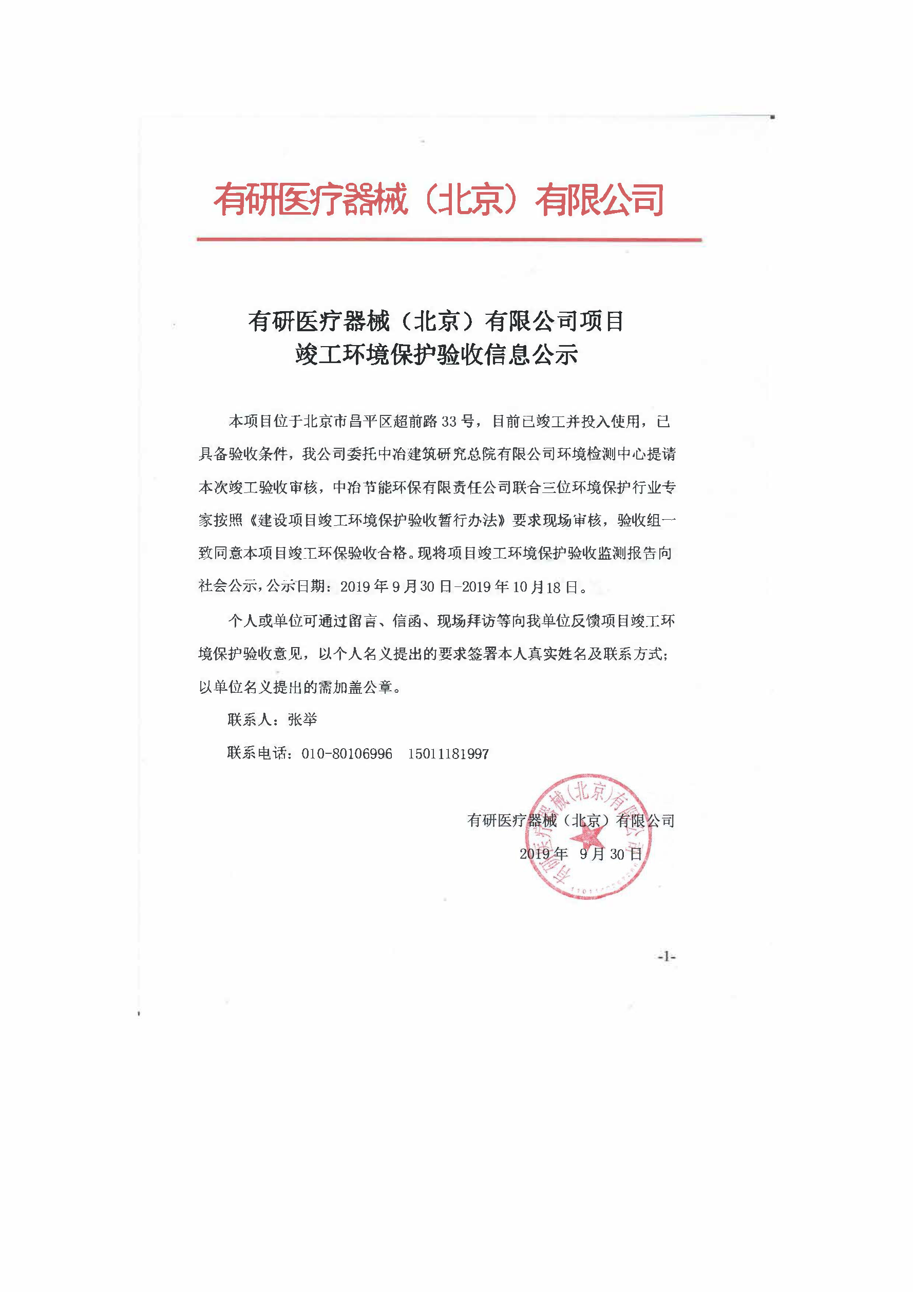 有研醫療器械(北京)有限公司項目竣工環境保護驗收信息公示...